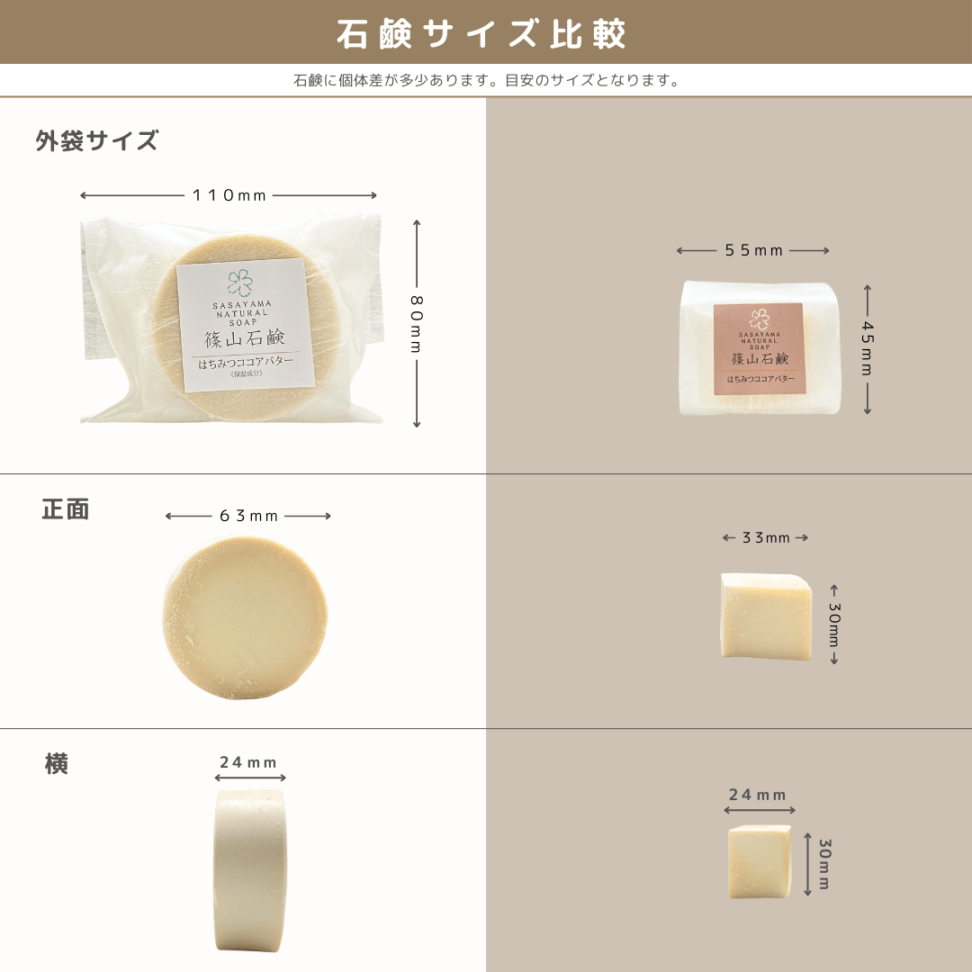 手作りのため、サイズや形には個体差があります。自然由来原料のため、香りや色、形状が変化する場合があります。